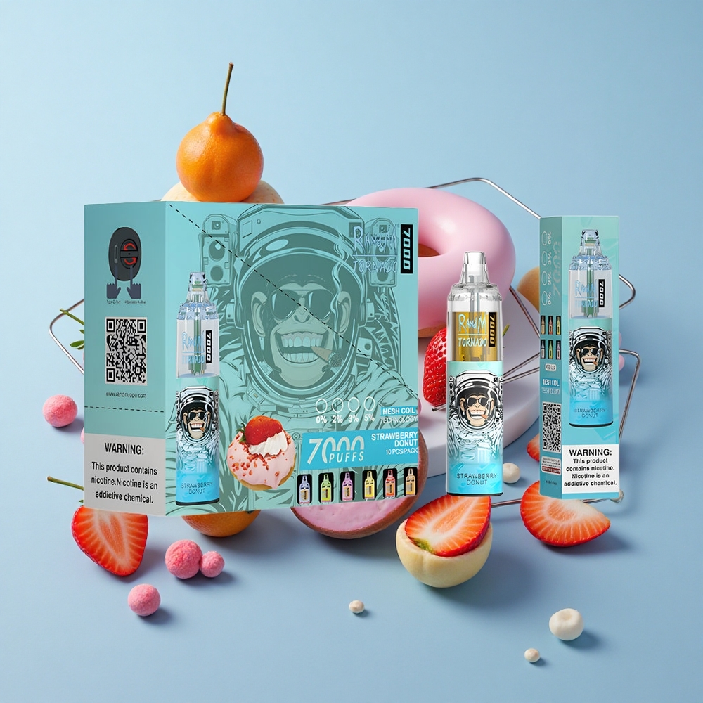 RandM Fumot Tornado 7000 Züge Wiederaufladbare E-Zigarette Erdbeer-Donut