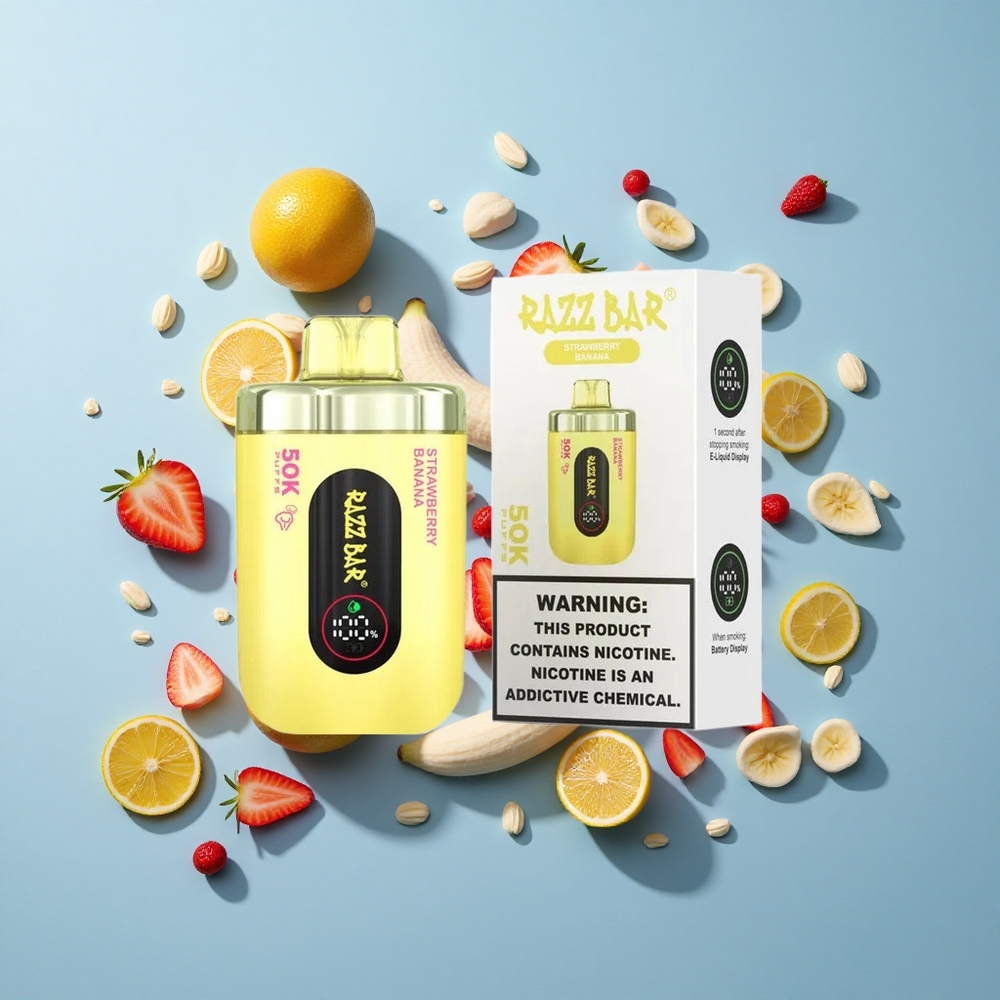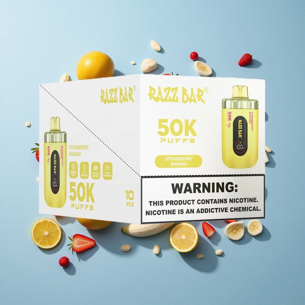 Razz Bar 50K Züge Einweg-Vape Erdbeere Banane mit 650-mAh-Akku