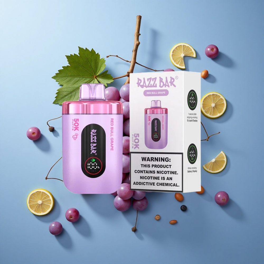 Razz Bar 50K Züge Einweg-Vape mit 1,0 Ohm Mesh Coil und Red Bull Traube