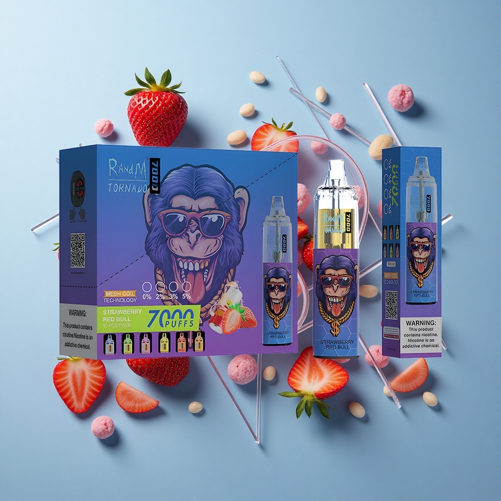 RandM Fumot Tornado 7000 Wegwerf-Vape mit 14 ML E-Liquid und Erdbeere Red Bull