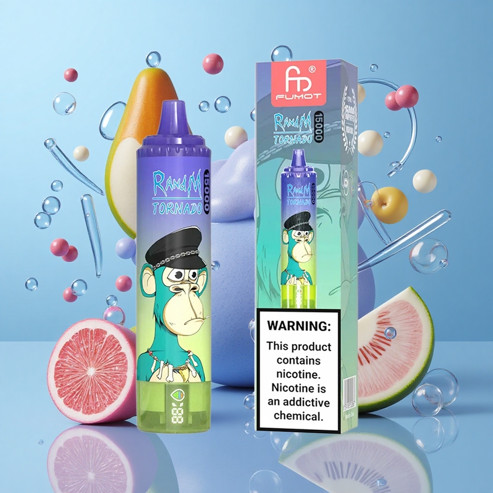 RandM Fumot Tornado 15000 Züge mit 25ml Flüssigkeitskapazität und Heidelbeere Bubblegum Geschmack