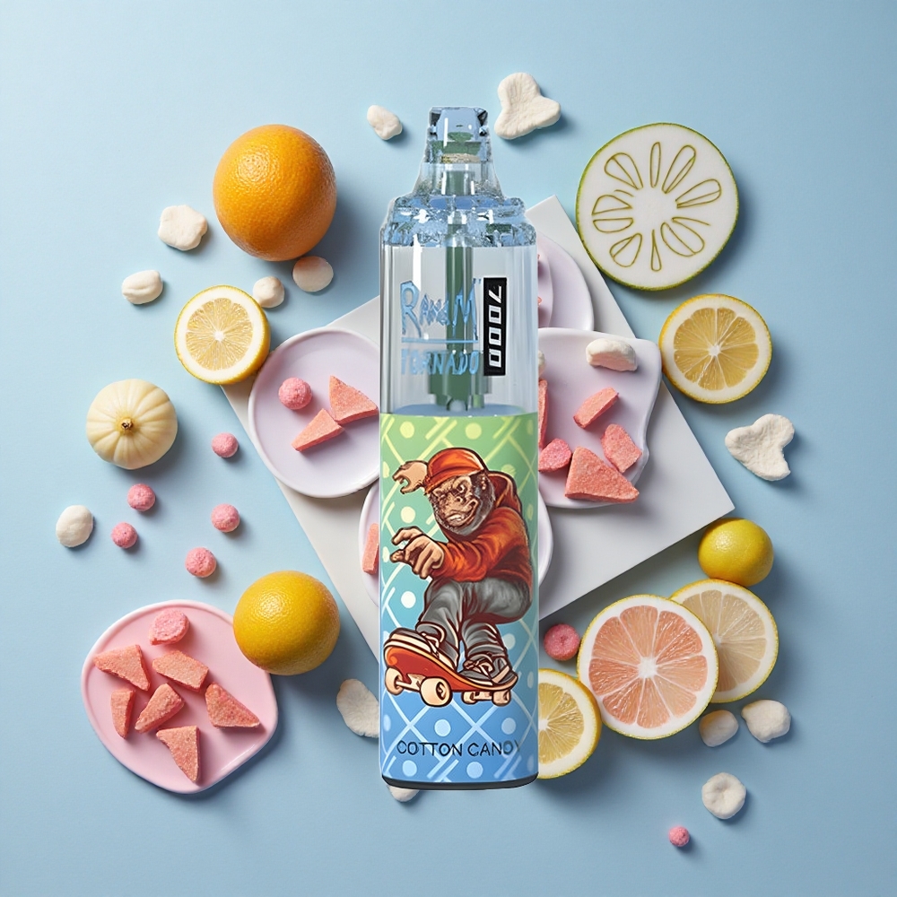RandM Fumot Tornado 7000 Wegwerf-Vape mit 14 ML E-Liquid und Baumwollbonbon-Geschmack